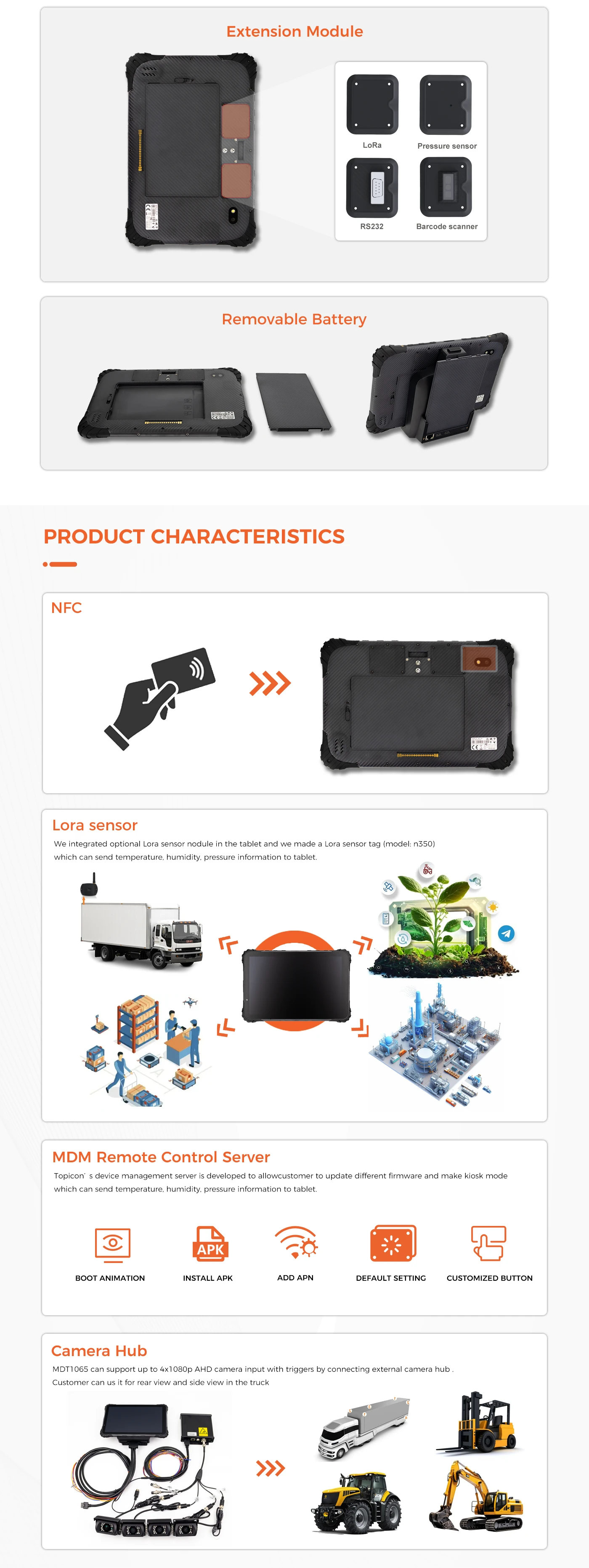 Support MDM remote control server. Support OTA upgrading, firmware customization, APK integration and debug log.