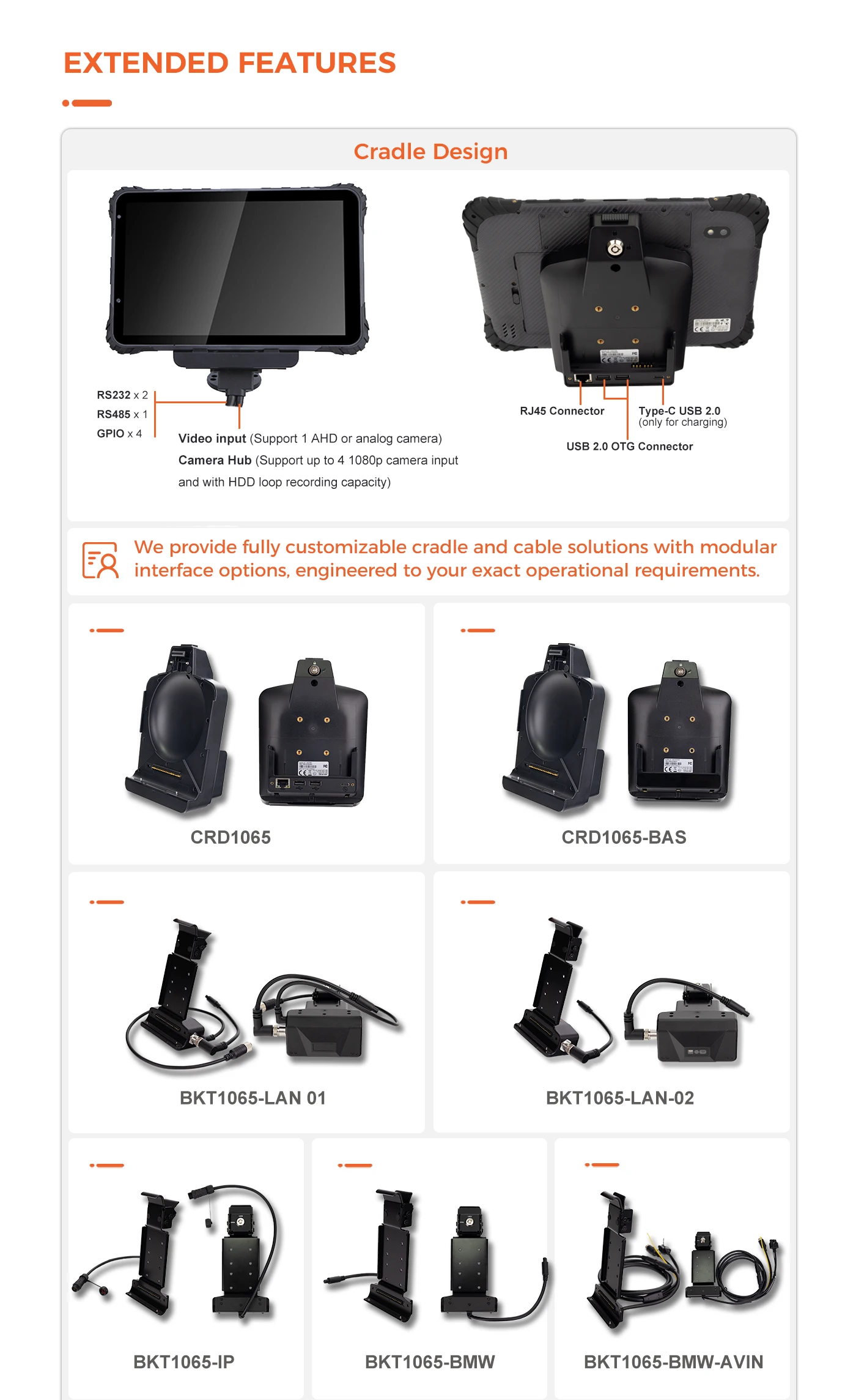 Video input :Support one channel AHD 720P,1080P and analogcamera (w/Cradle)