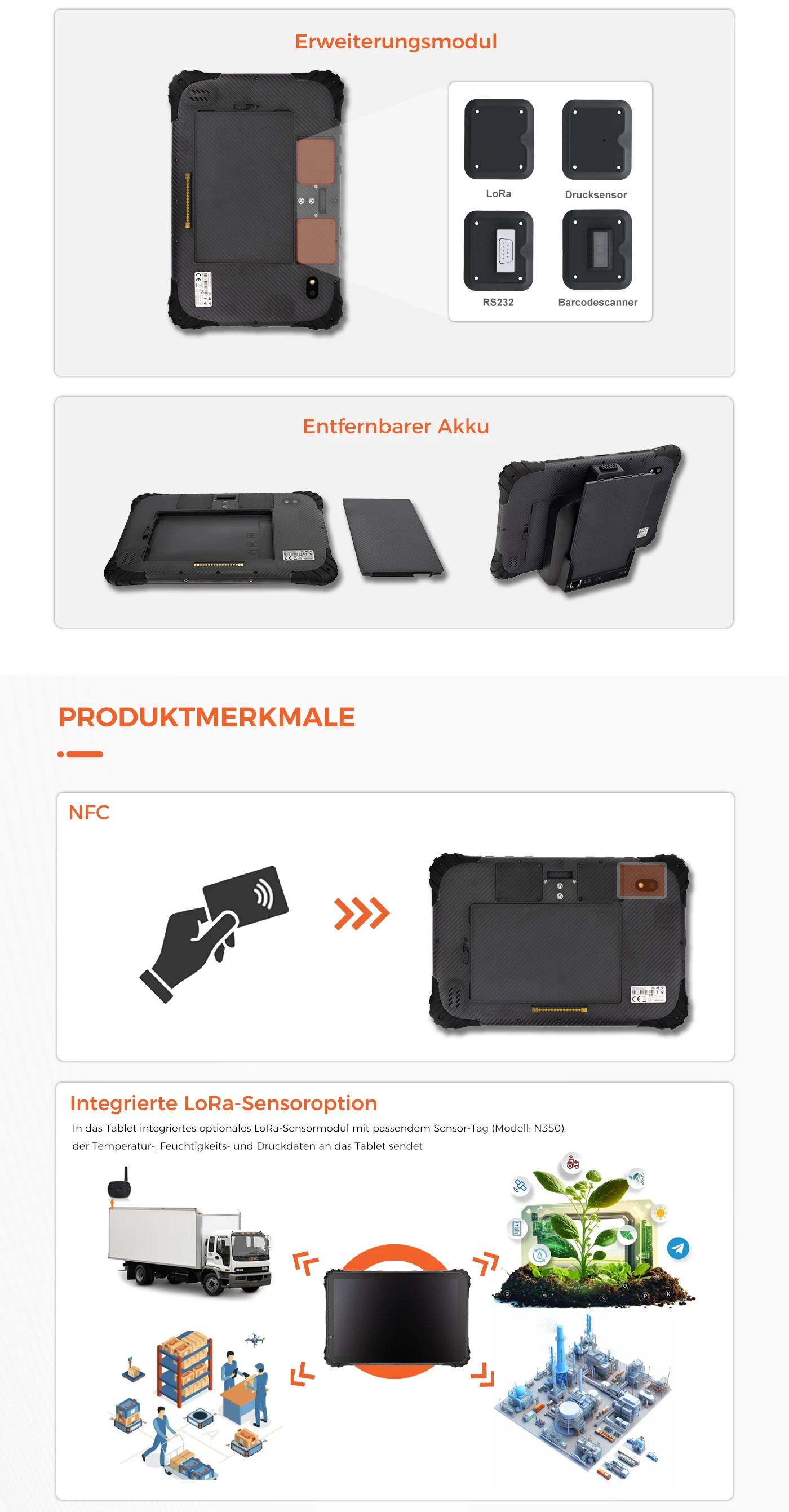 USB-Typ-C-Anschluss: USB 2.0-Anschluss und LadefunktionPago-Pins: Unterstützt serielle Schnittstelle, USB, 12-V/24-V-Eingang, Zündung, EEPROMSIM-Kartensteckplatz: Ja, zwei Nano-SIM-Karten